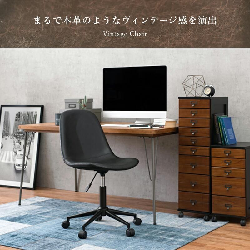 まるで本革のようなヴィンテージ調のチェア。昇降式でキャスター付きなのでデスク周りで使いやすい。