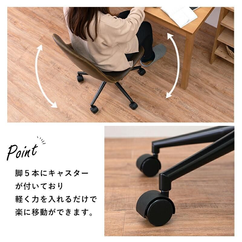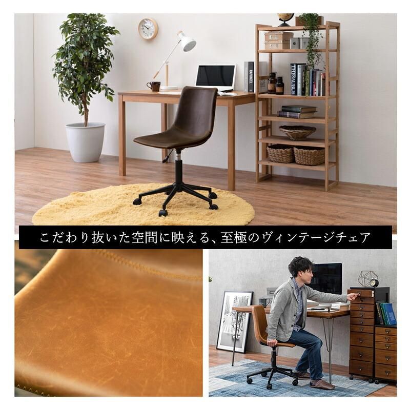 まるで本革のようなヴィンテージ調のチェア。昇降式でキャスター付きなのでデスク周りで使いやすい。