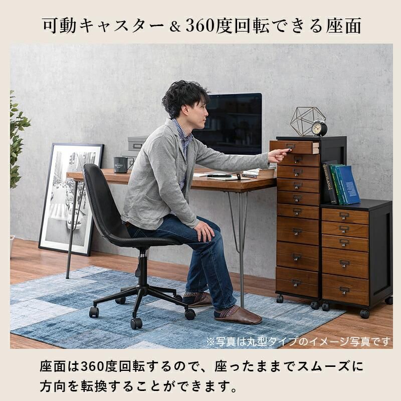 デスクチェア 四角型 キャスター付 昇降 高さ調節可能 360度回転 ヴィンテージ調 レザー調 ブラック ブラウン おしゃれ 椅子 チェア パソコンチェアー