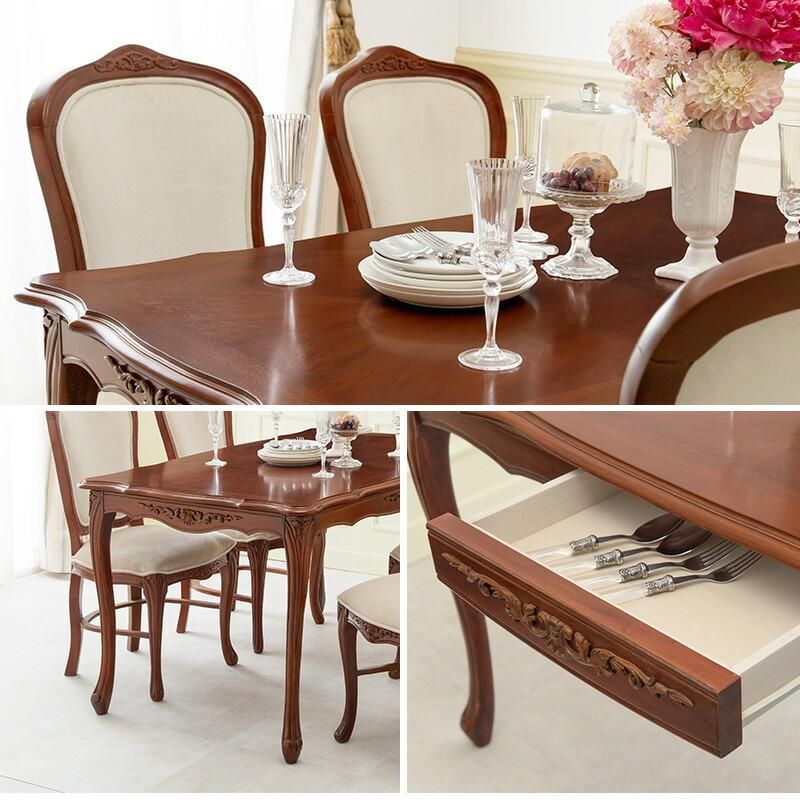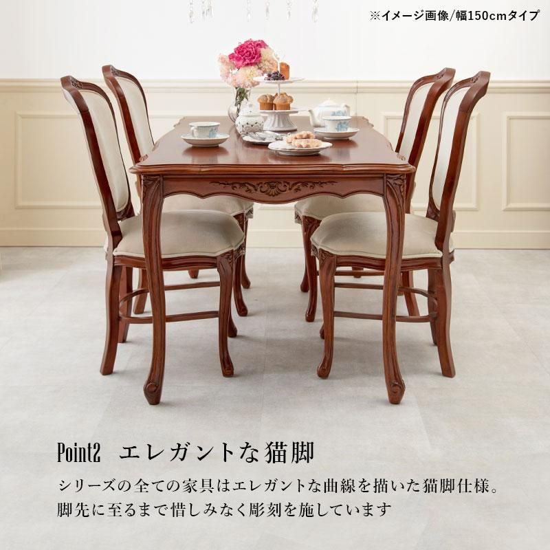 商品説明 天然木マホガニー材を使用したエレガントダイニングテーブル 手彫り仕上げの為、1点1点の風合いが違います。