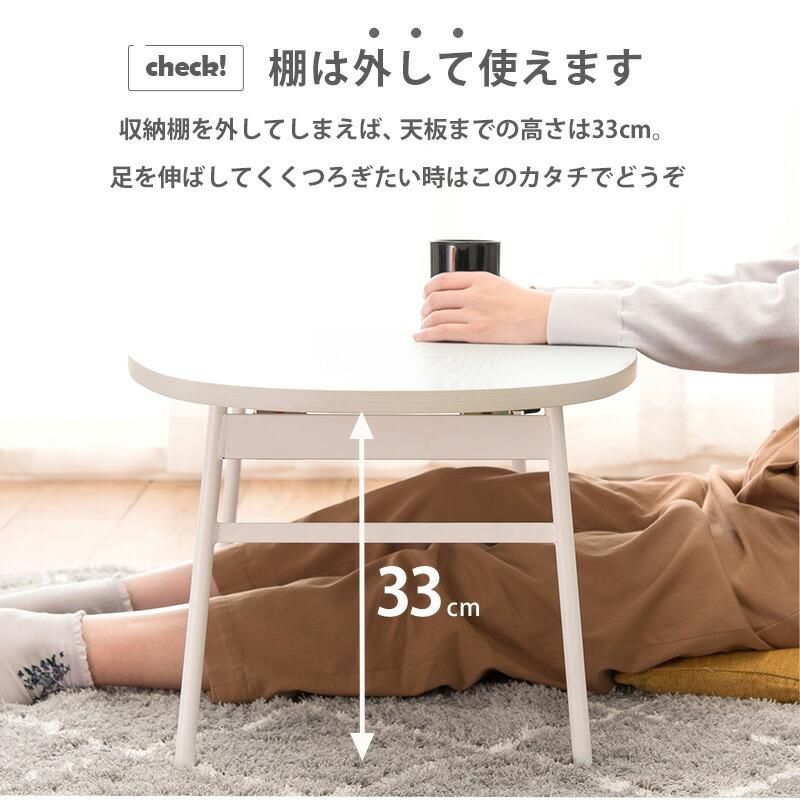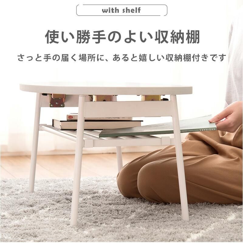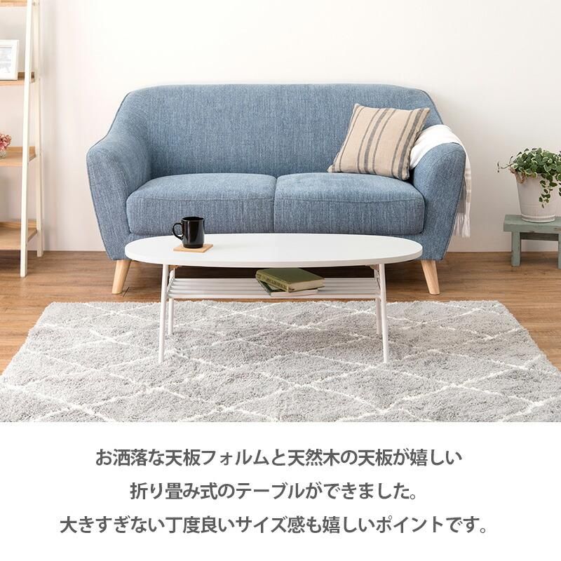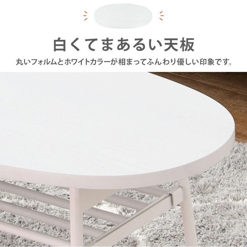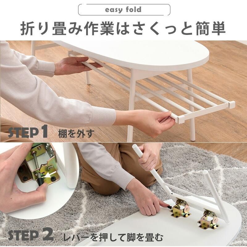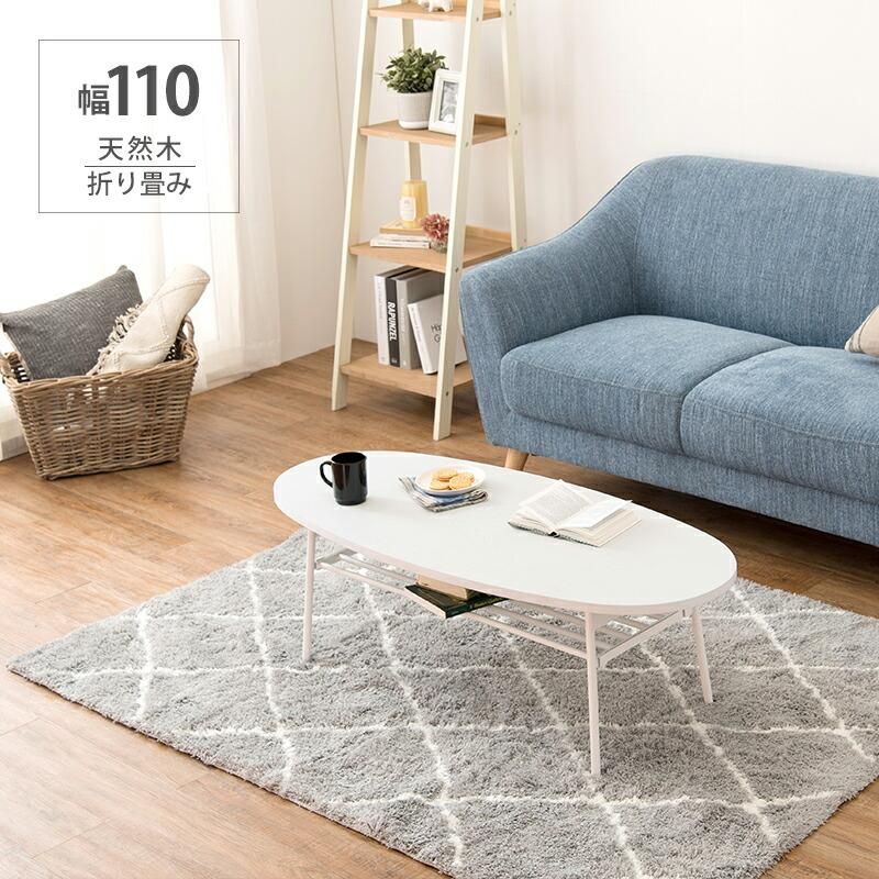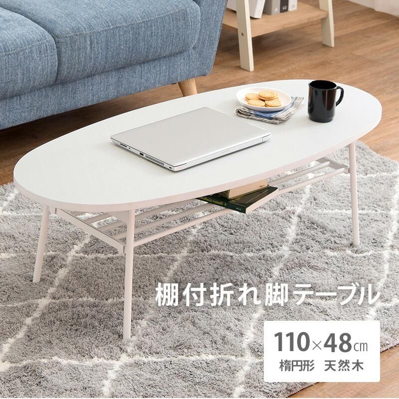 【要確認】沖縄・離島は配送不可地域です。配送先が不可地域の場合はご注文後キャンセル処理させていただきます ■【完成品】テーブル ホワイト おしゃれ 白 センターテーブル ローテーブル 円 楕円 幅110 木目ホワイト オーバルテーブル 棚付き 折れ脚 たためる 組立不要 テーブル オーバル■