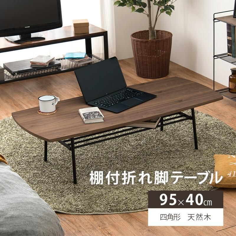 【要確認】沖縄・離島は配送不可地域です。配送先が不可地域の場合はご注文後キャンセル処理させていただきます ■【完成品】テーブル ブラウン おしゃれ 茶色 センターテーブル ローテーブル 長方形 幅95 木目 スクエア アイアン ウォールナット調 棚付 折れ脚 たためる 組立不要■