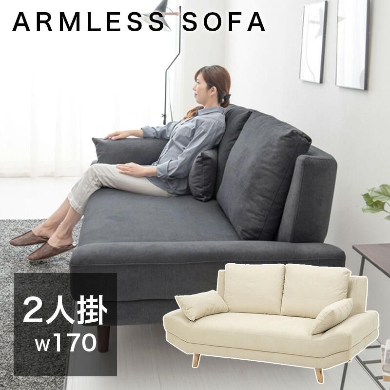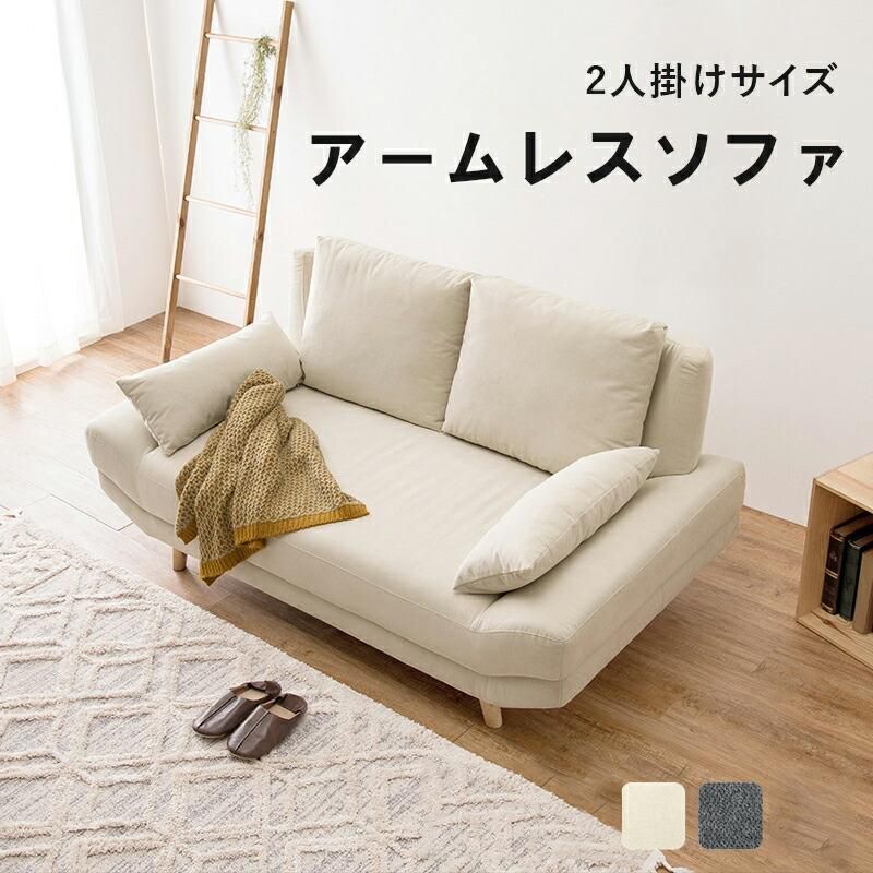 ソファ アームレス クッション付 開梱設置商品 2人掛け 重厚 グレー ホワイト アイボリー 木製脚 おしゃれ ソファー 【開梱設置商品】