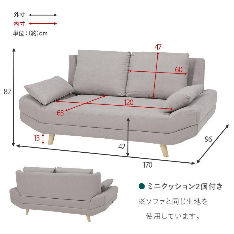 本体サイズ(cm)(約)幅170×奥行96×高さ82/71×座面高42/31cm