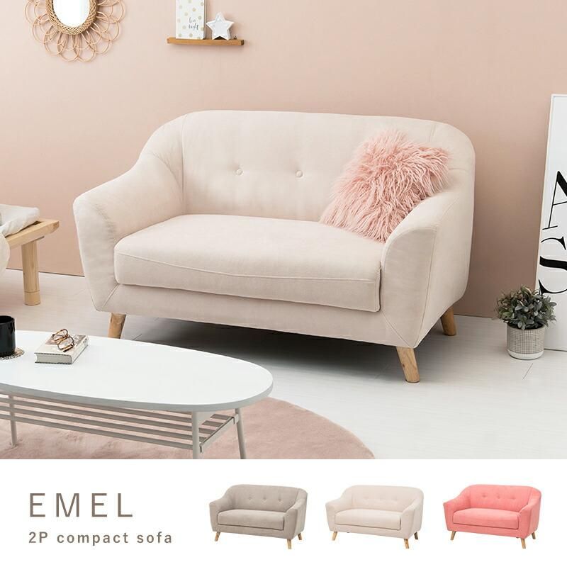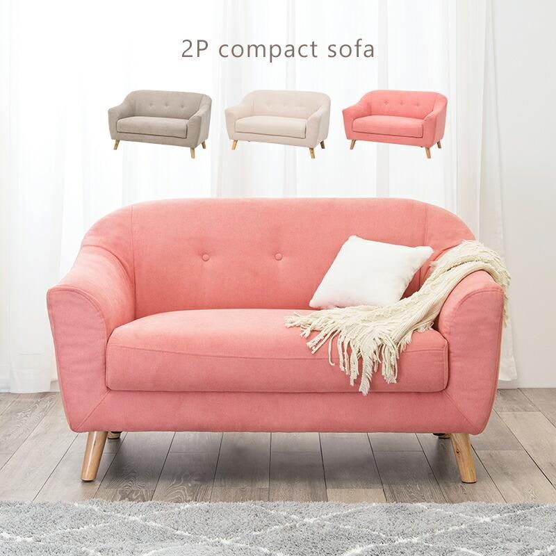 ソファ 2人掛け かわいい 女の子 一人暮らし ピンク ピンクベージュ アイボリー 木製脚 おしゃれ ソファー