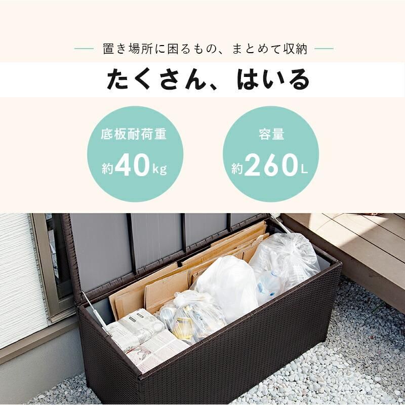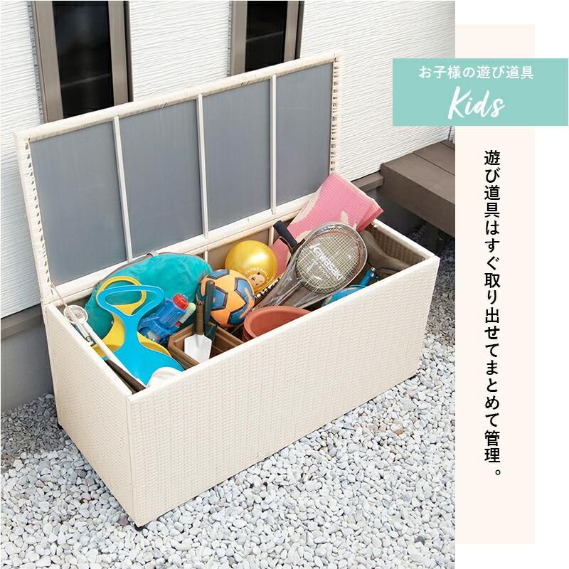 商品説明 樹脂製なのでお手入れ簡単。ベランダやお庭の収納に。