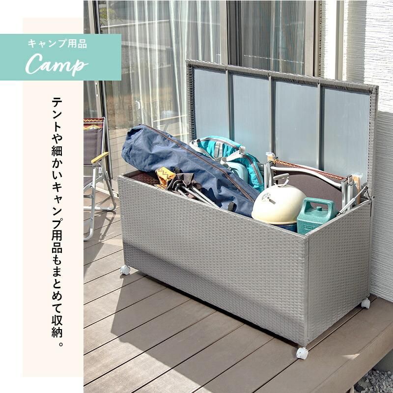 ■収納庫 幅123 高さ約60 おしゃれ 蓋付き フタ付き ベランダ キャスター付 ラタン調 ブラウン グレー ホワイト■