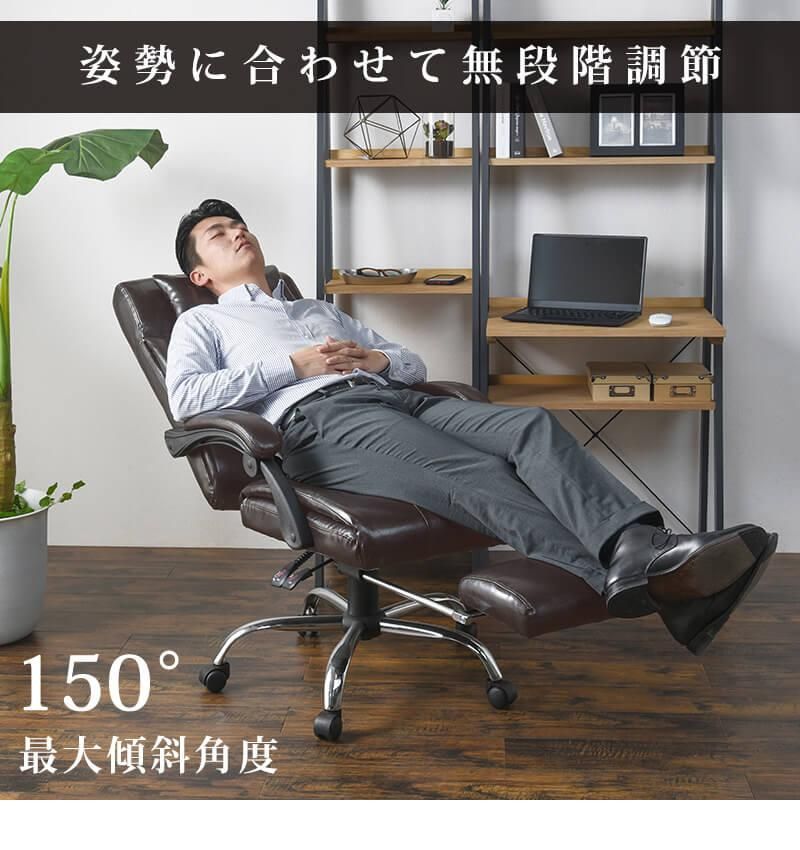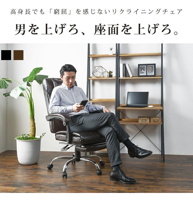 パーソナルチェア オフィスチェア オットマン キャスター付き 椅子 ブラウン 黒 スタイリッシュ ブラック 在宅ワーク リクライニングチェア オットマン一体型