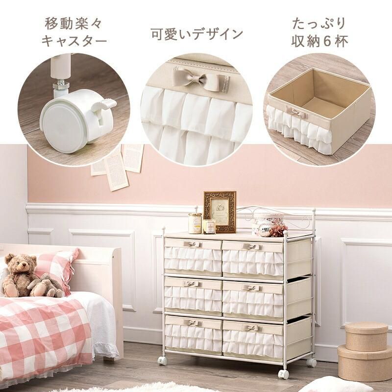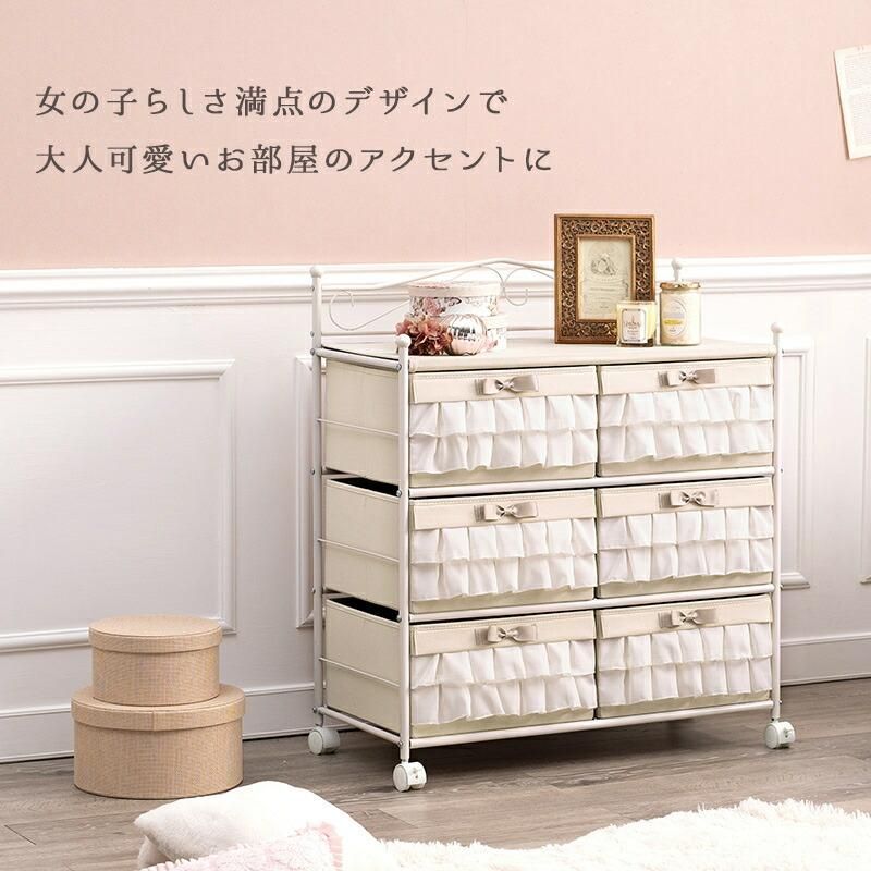 フリル 可愛い 乙女 エレガント おしゃれ ロマンティック チェスト 引き出し 収納 可愛い カワイイ チェスト ピンク キャスター付 スチール
