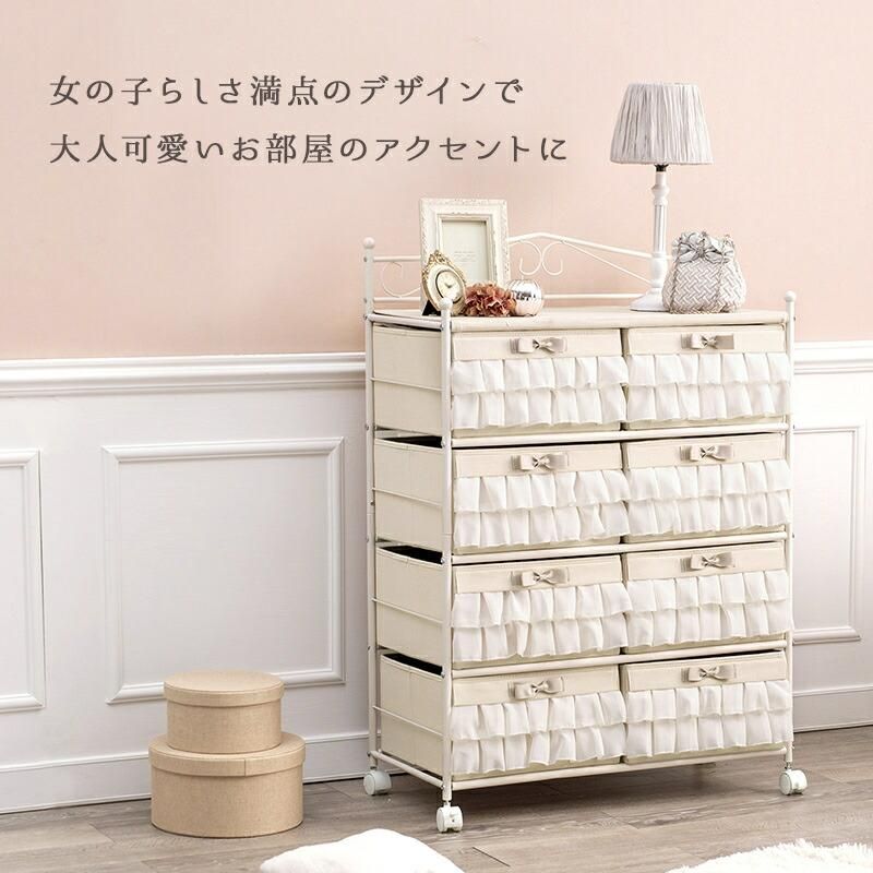 フリル 可愛い 乙女 エレガント おしゃれ ロマンティック チェスト 引き出し 収納 可愛い カワイイ チェスト ピンク キャスター付 スチール
