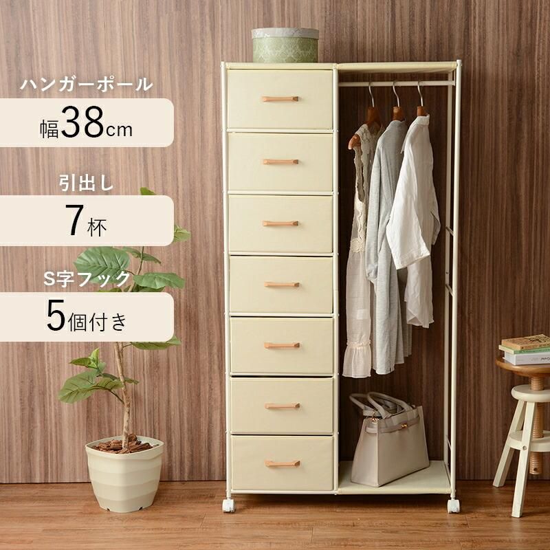 商品説明 シンプルなデザインに引出し収納も兼ね備えたハンガーラック。キャスター付きで掃除や移動にも便利