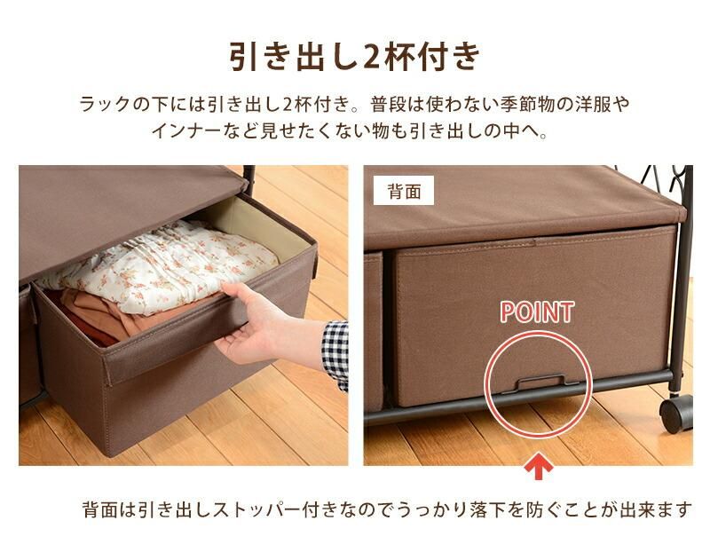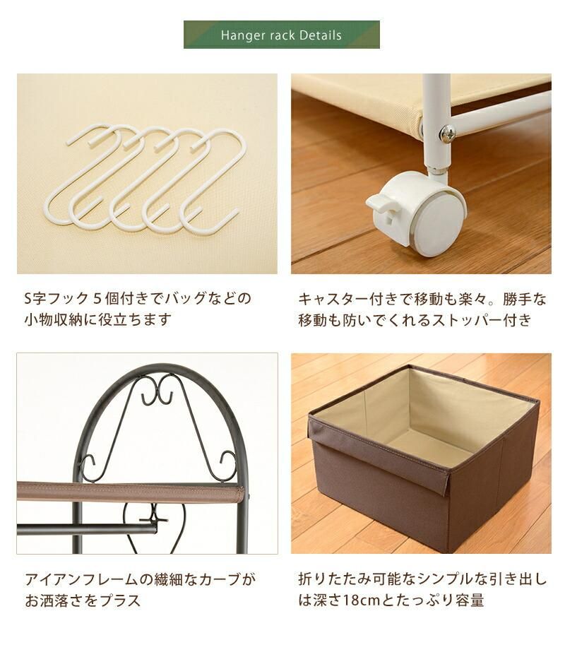 【要確認】沖縄・離島は配送不可です。配送先が不可地域の場合はご注文後キャンセル処理させていただきます。 ■ハンガーラック アイアン 一人暮らしワンルーム 収納 コートハンガー 衣類収納 曲線 エレガント 衣類 帽子 小物収納 引出 S字フック付 キャスター スチール■