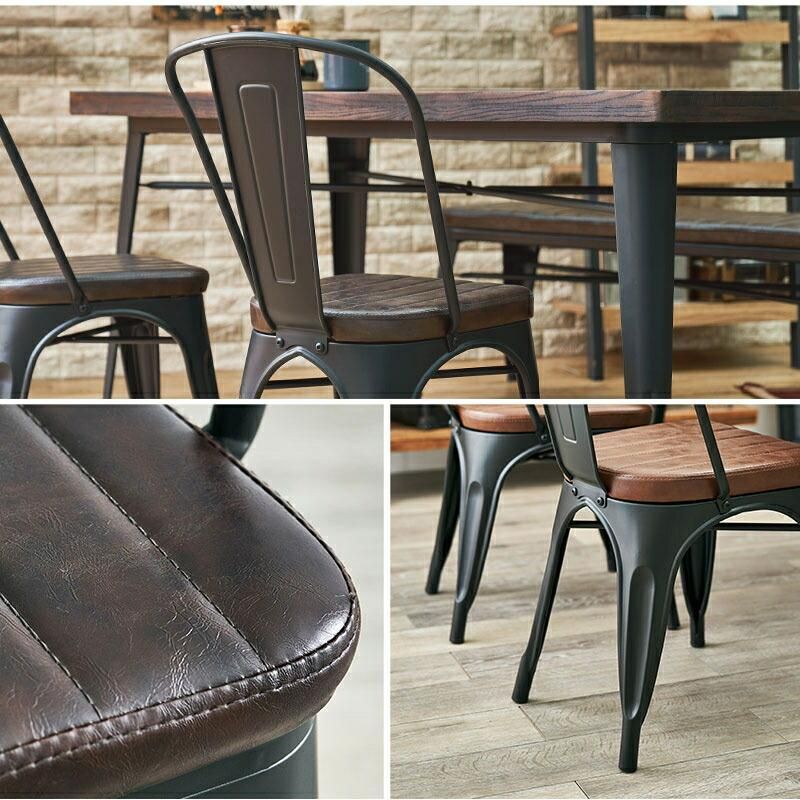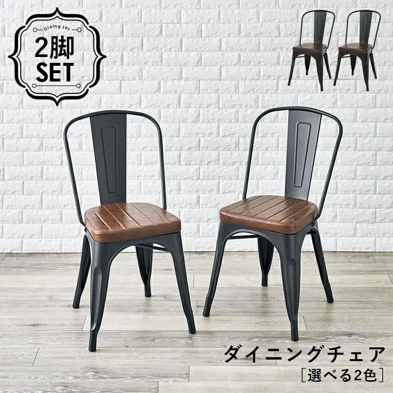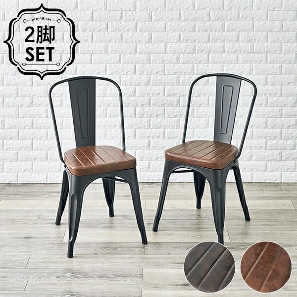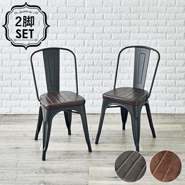 ■【2脚セット】チェア チェア 椅子 イス オシャレ おしゃれ クッション ヴィンテージ感 ダイニングチェア スチール 合成皮革■