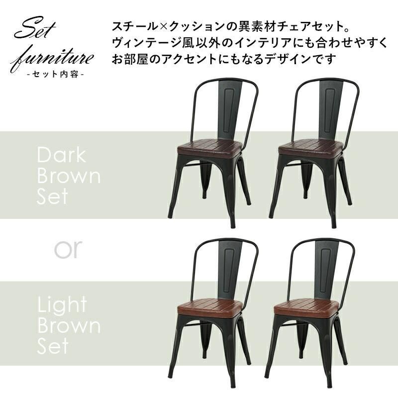【要確認】沖縄・離島は配送不可です。配送先が不可地域の場合はご注文後キャンセル処理させていただきます。 ■【2脚セット】チェア チェア 椅子 イス オシャレ おしゃれ クッション ヴィンテージ感 ダイニングチェア スチール 合成皮革■