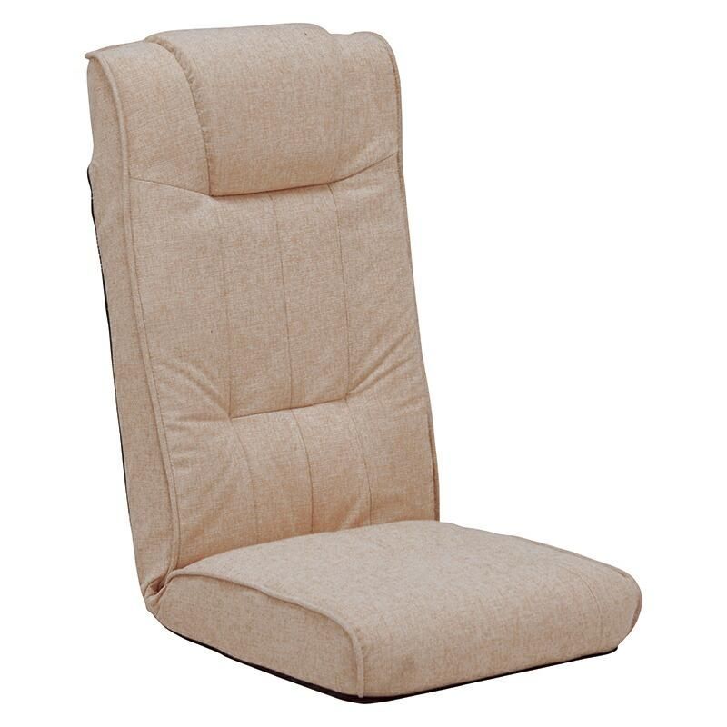しっかり座れる座椅子。背もたれ部42段階リクライニングで頭部は14段階リクライニング。