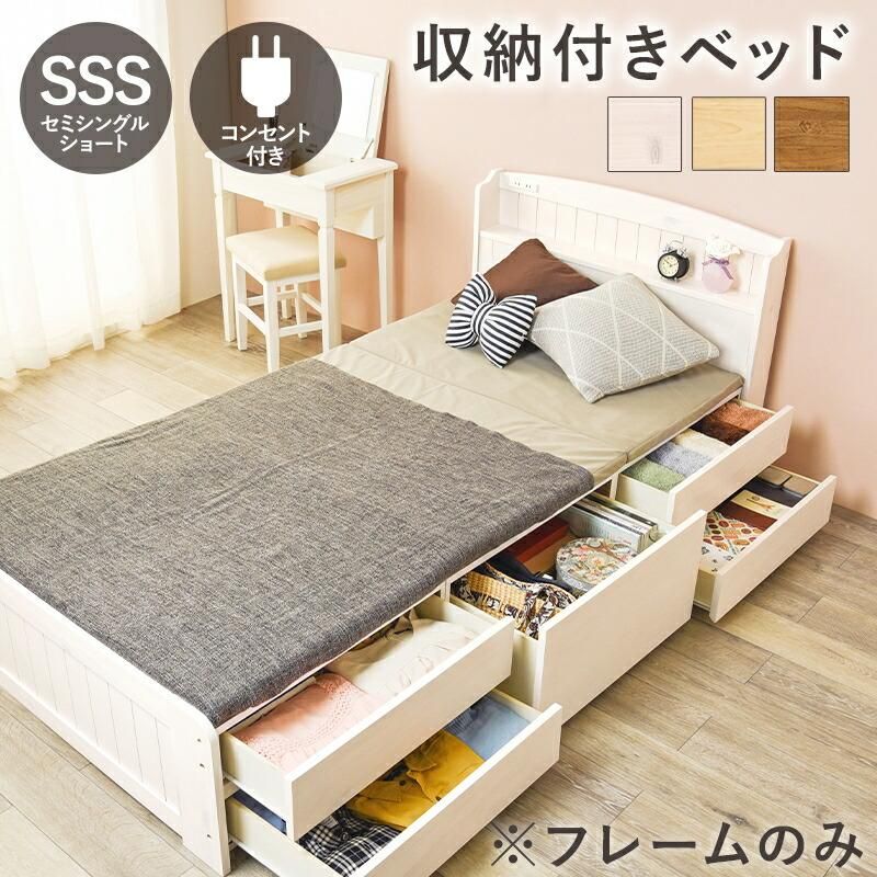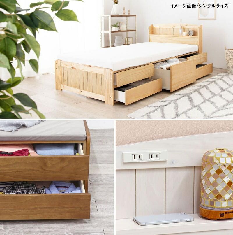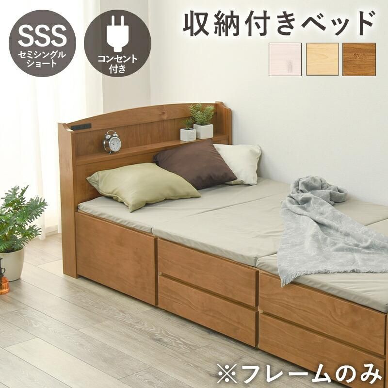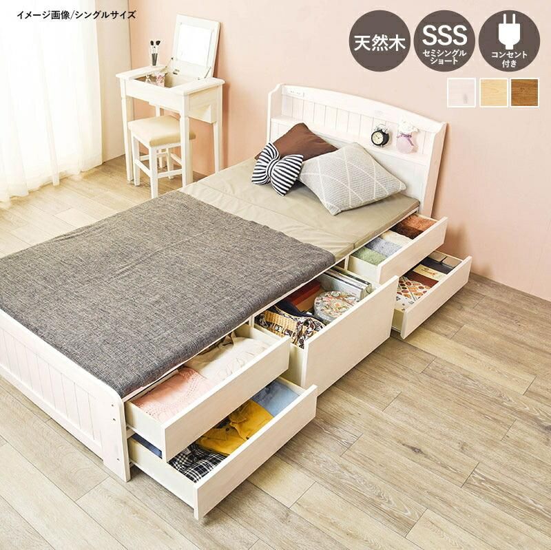 チェスト付ベッド(セミシングルショート) 大容量 収納 ベッド 宮棚 コンセント付き チェストベッド 天然木 シンプル ナチュラル オシャレ おしゃれ