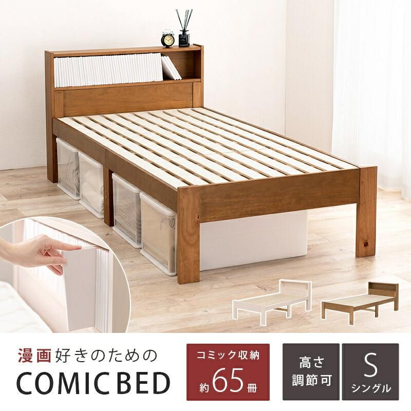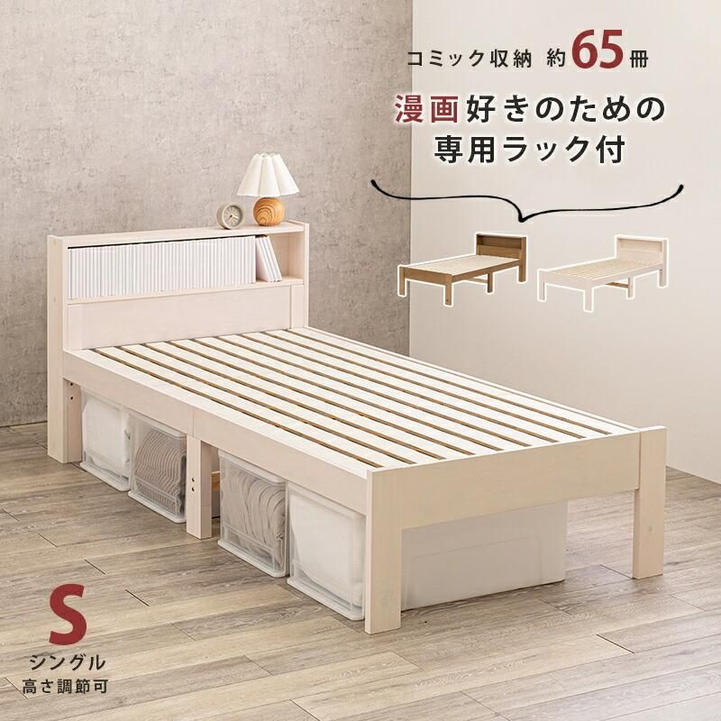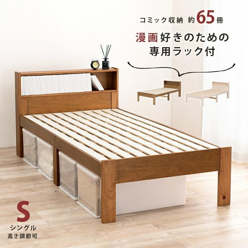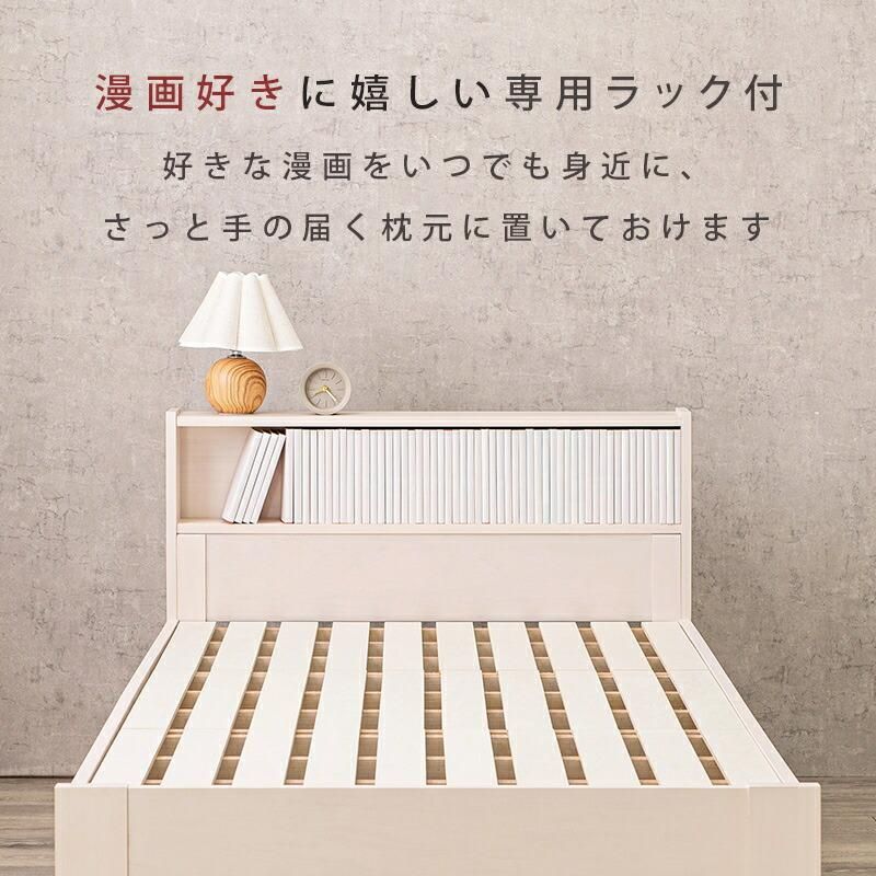 ■シングルベッド 収納つき ベッド コミック収納 漫画ラック 専用ラック付 シンプル ナチュラル オシャレ 木製 すのこベッド 天然木■