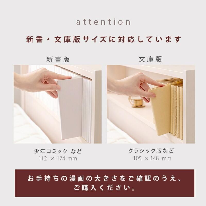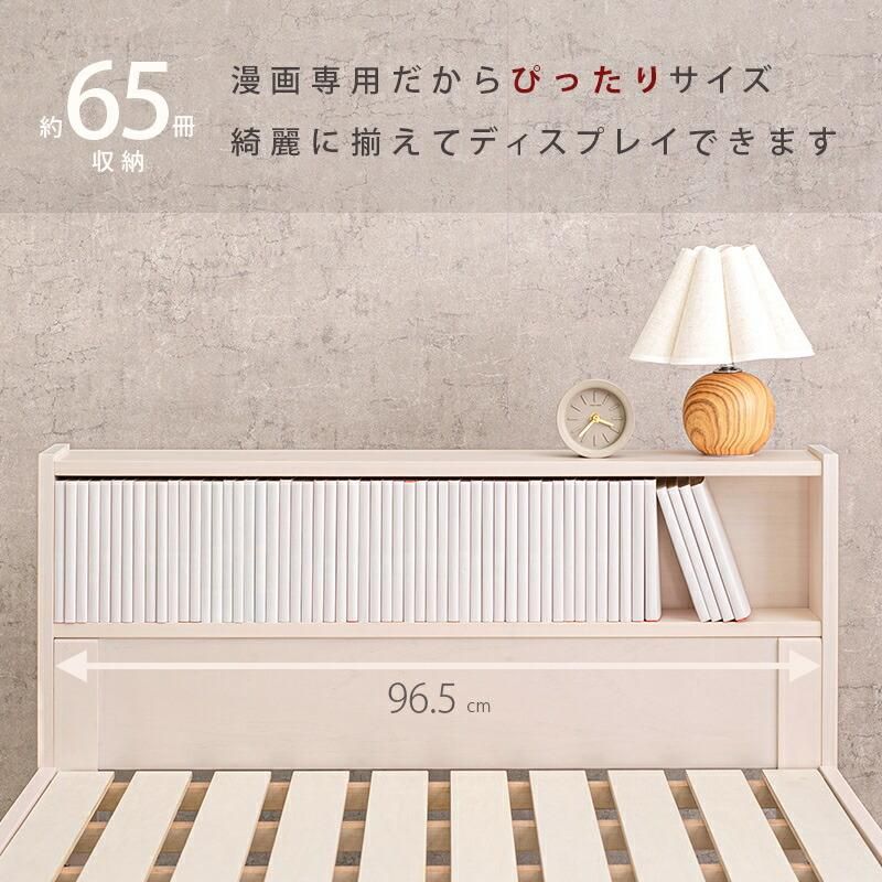 商品説明 漫画好きに嬉しい専用ラック付き木製すのこベッド。マットレスにも布団にも対応可能。