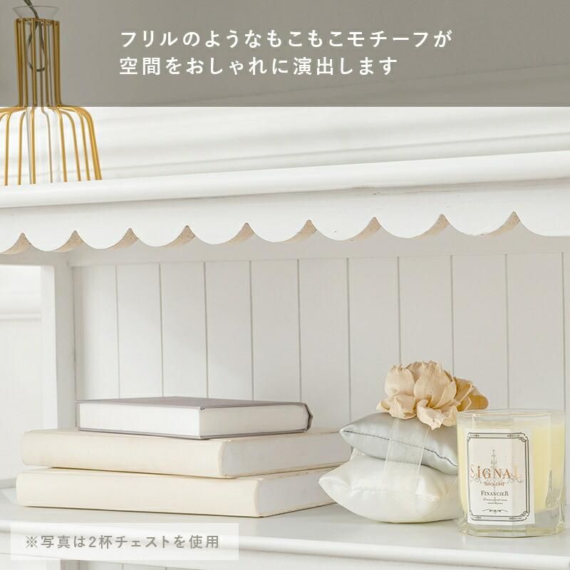キャビネット ホワイト フリルのなデザイン 可愛い 収納 リビング カワイイ 白 女の子 オープンキャビネット 棚 フリルのなデザイン
