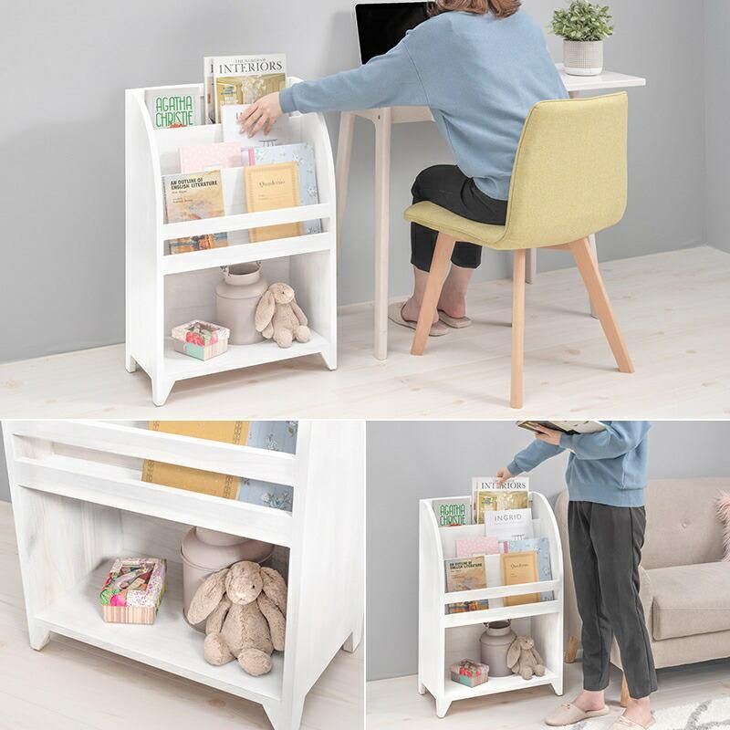 シャビーホワイトが可愛いシンプルなアンティーク調マガジンラック。