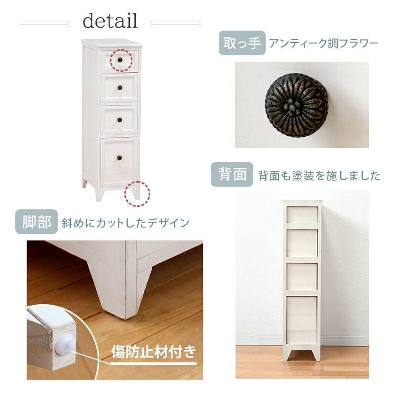 【要確認】沖縄・離島は配送不可です。配送先が不可地域の場合はご注文後キャンセル処理させていただきます。 ■スリムチェスト アンティークホワイト 隙間 アンティーク調 スリム 洗面所 ランドリーラック 引出 桐チェスト アンティーク風 ホワイト 白 隙間ラック 収納 引き出し収納 オシャレ おしゃれ 小物収納■