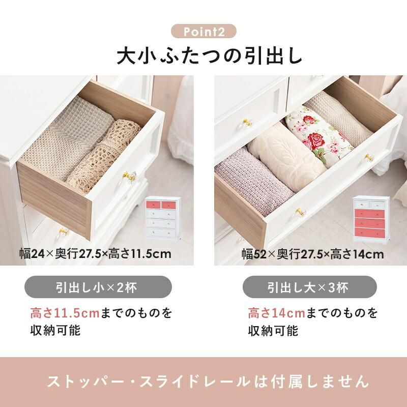 その他サイズ■引出内寸(小):(約)幅24×奥行27.5×高さ11.5cm■引出内寸(大):(約)幅52×奥行27.5×高さ14cm