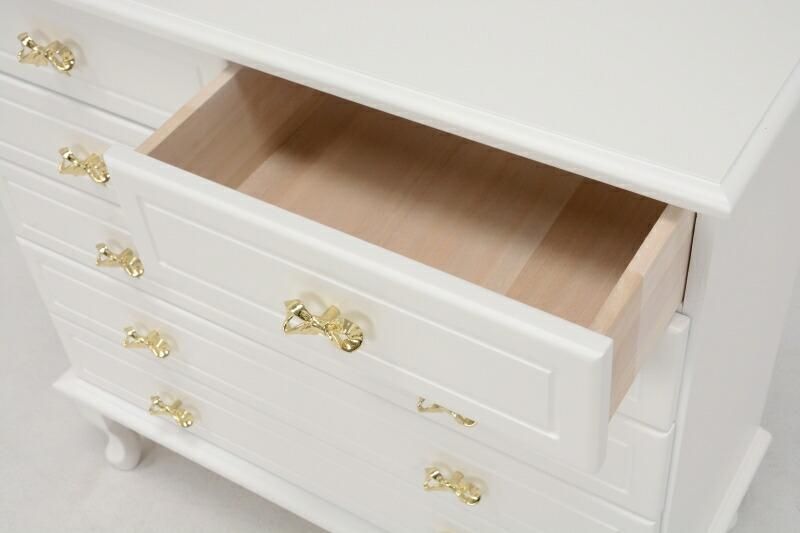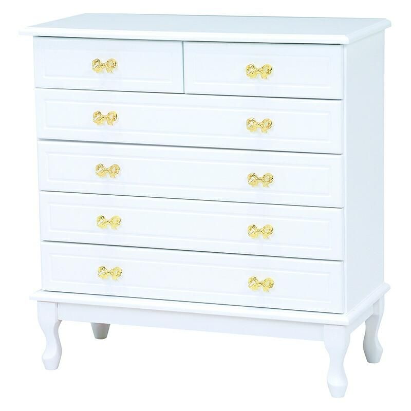 商品説明 猫脚とリボンモチーフの取っ手がお洒落で可愛いワイドチェストです。