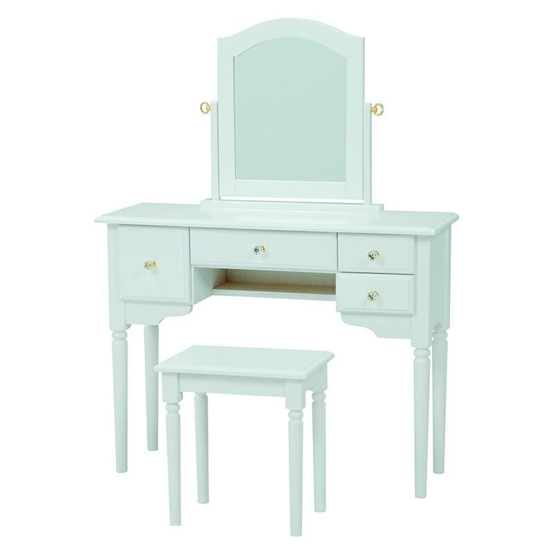 ■ドレッサーセット ホワイト キラキラ クリスタル調の取っ手 シンプル ドレッサー セット 収納付 テーブル 引出 スツール チェア 椅子 イス 鏡 ミラー 桐■