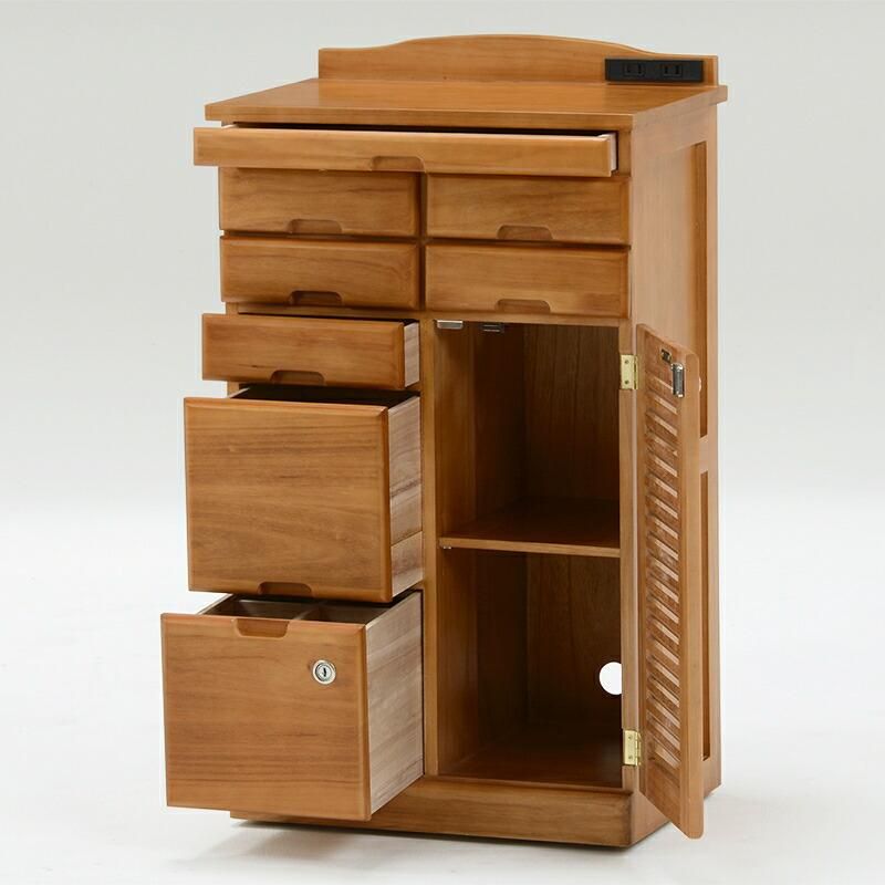 チェスト リビング収納 ナチュラル ルーター スマホ台 多段チェスト 収納 引き出し FAX台 隠しキャスター 移動がラク 鍵付き 引出 棚 キャスター付