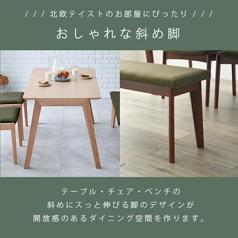 本体サイズ(cm) テーブル:(約)幅120×奥行75×高さ70cmチェア:(約)幅50.5×奥行57.5×高さ72.5×座面高43cmベンチ:(約)幅100×奥行33×高さ43×座面高43cm 商品重量(kg) 主材:ビーチ集成材、天板:天然木化粧繊維板、張地:ポリエステル 組み立て お客様ご自身で要組み立て