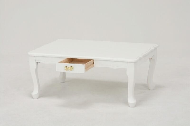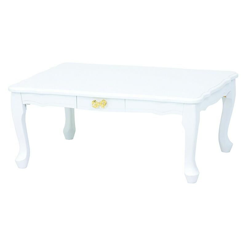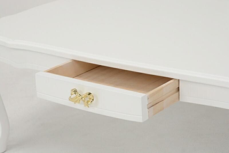 商品説明 折りたたみ式で収納らくらく、引き出しのリボンモチーフの取っ手と猫脚が可愛いコンパクトテーブル。
