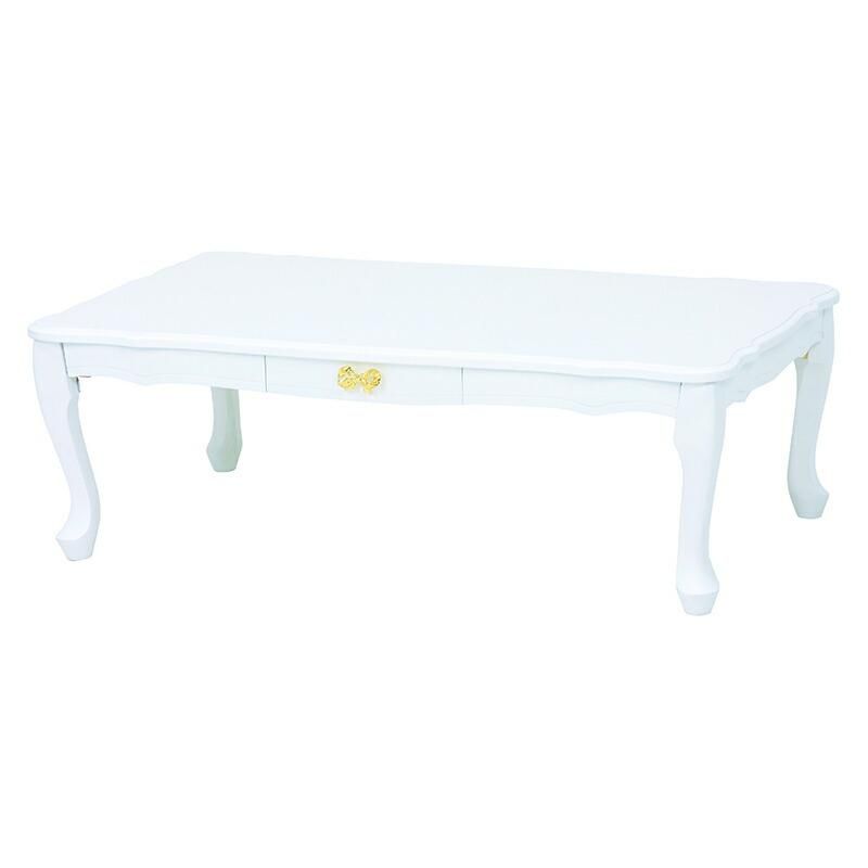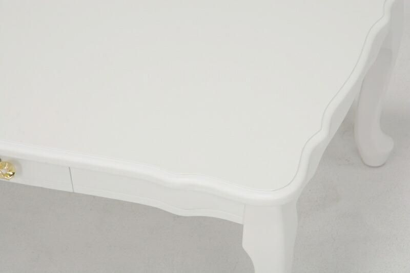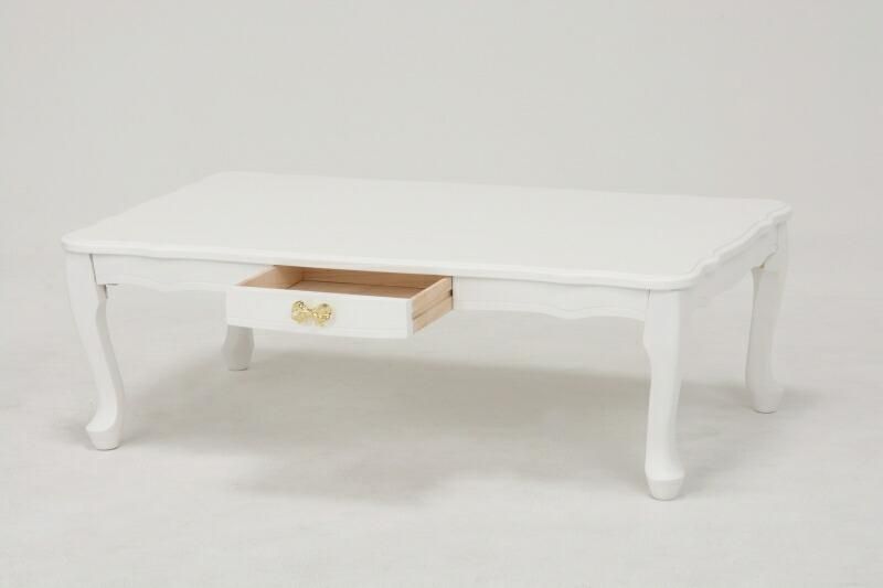 商品説明 折りたたみ式で収納らくらく、引き出しのリボンモチーフの取っ手と猫脚が可愛いコンパクトテーブル。