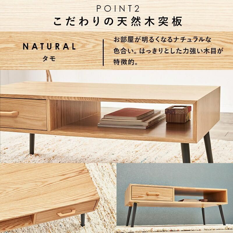 商品説明 天然木の風合いを感じられるモダンなデザインの引出し付きローテーブル。幅100cm