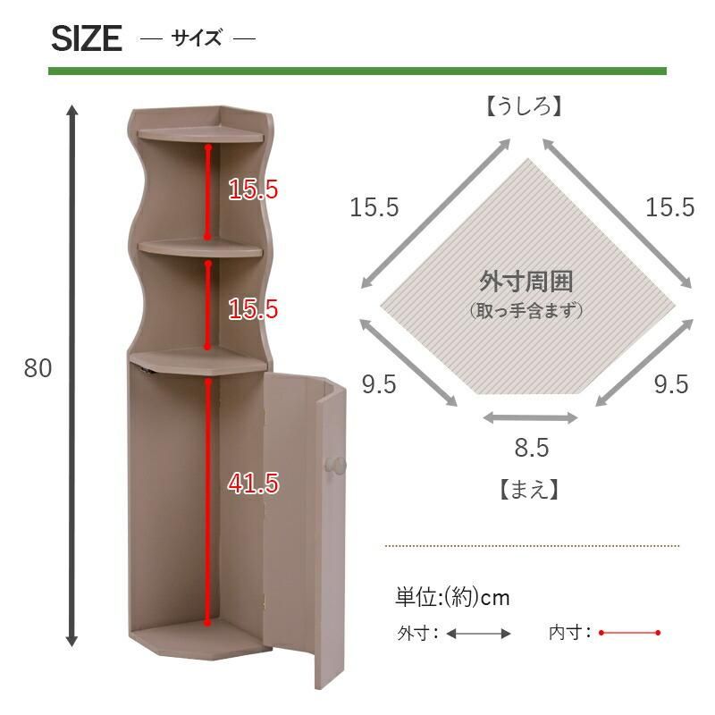 商品説明 トイレのコーナーを活かして省スペースなのにしっかり収納。