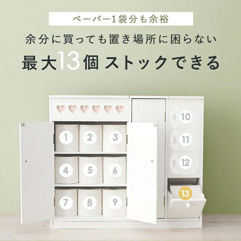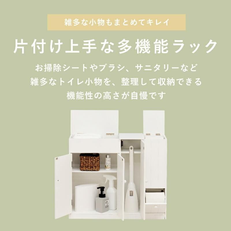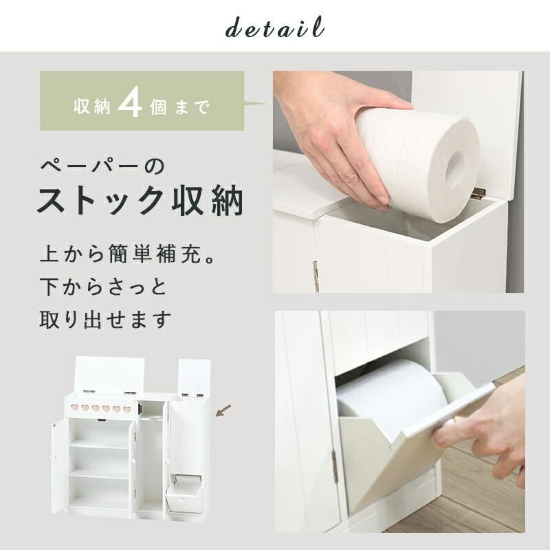 ペーパーロールやお掃除ブラシなどトイレの小物を清潔スッキリまとめて収納。