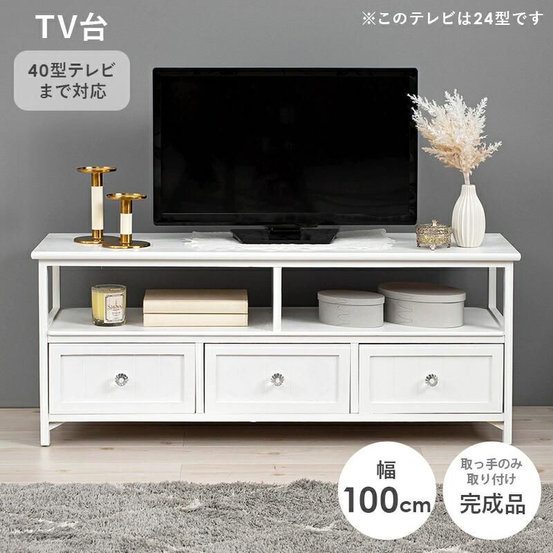 【要確認】沖縄・離島は配送不可です。配送先が不可地域の場合はご注文後キャンセル処理させていただきます。 ■TV台 ホワイト テレビ台 クリスタル調の取っ手 引出 オシャレ テレビボード エレガント おしゃれ カワイイ 女の子 家具■