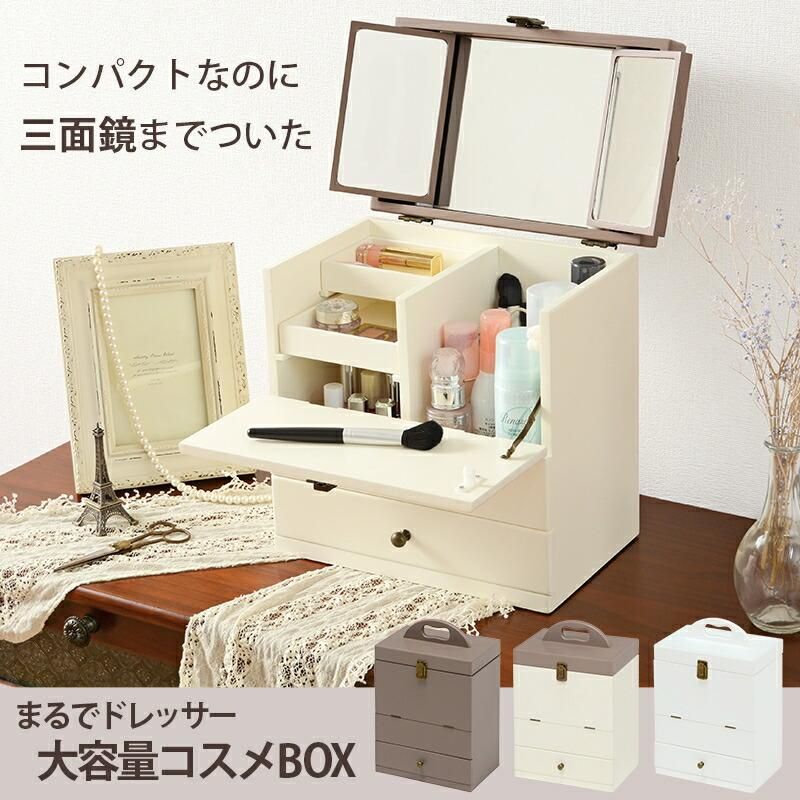 コスメボックス アンティーク風 大人かわいい メイクグッズ 整理 可愛い カワイイ 三面鏡 アンティーク調 コスメ収納ボックス メイク