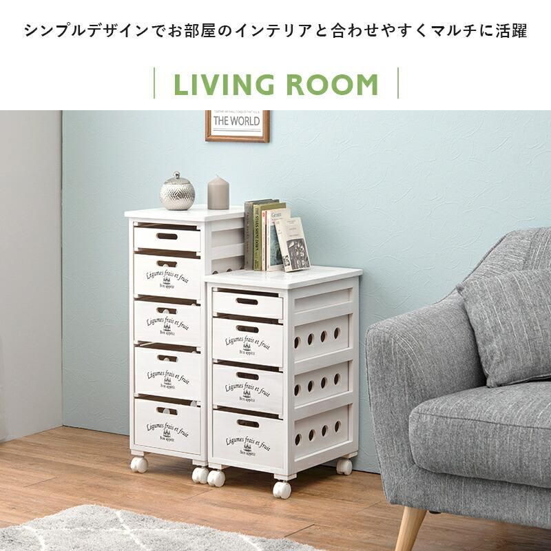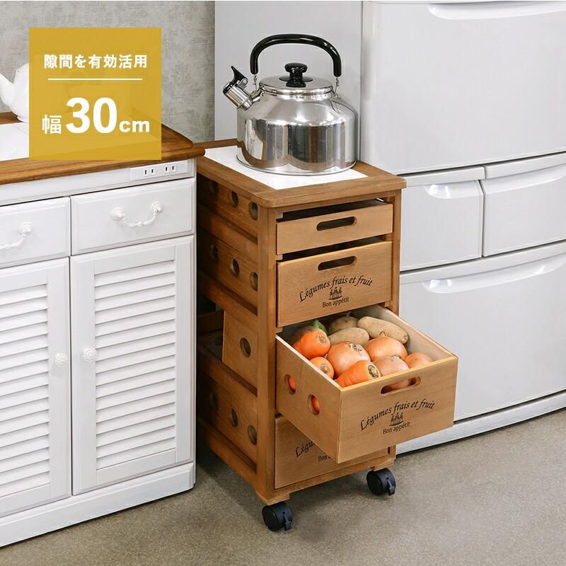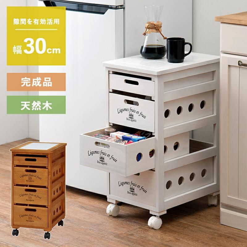 ストッカー ホワイトウォッシュ キャスター付き 木製 野菜ストッカー タイル天板 便利 引出 桐