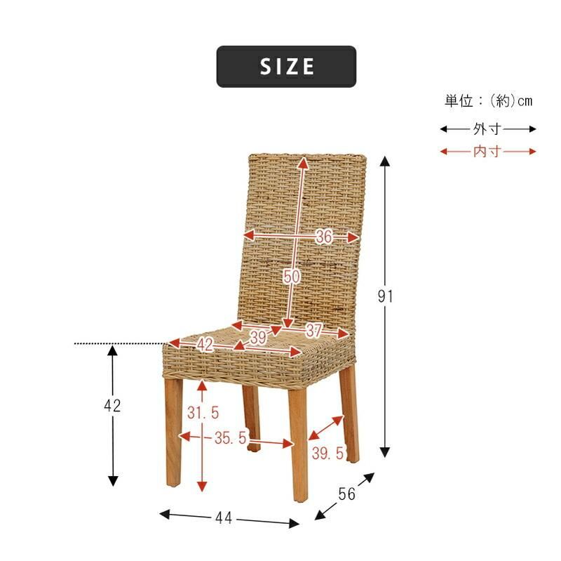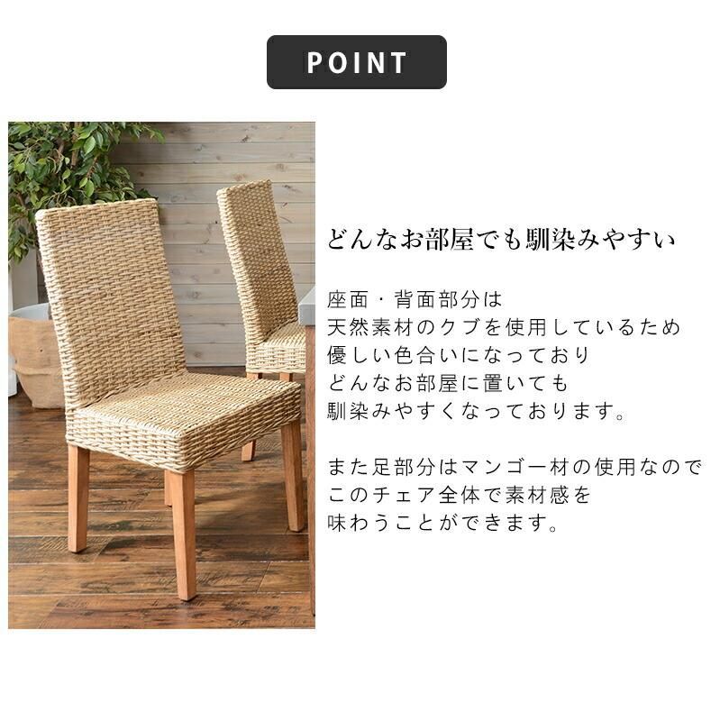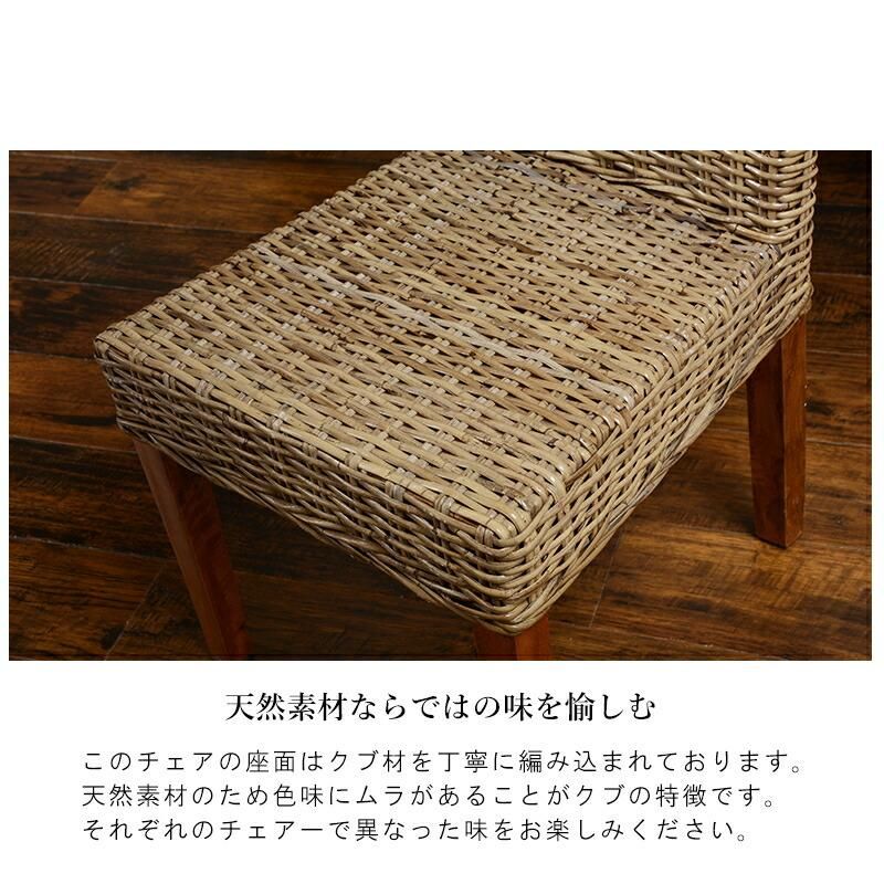 【2脚セット】チェアー ラタン クブ材 チェア 天然素材の風合い ナチュラル オシャレ ダイニングチェア 椅子 イス