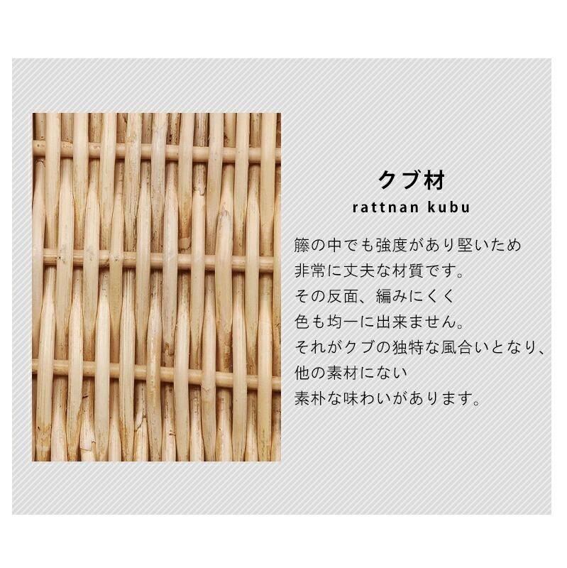 表皮を付けたままのラタン(クブ)材を使用したチェア。天然素材の風合いをお楽しみいただけます。