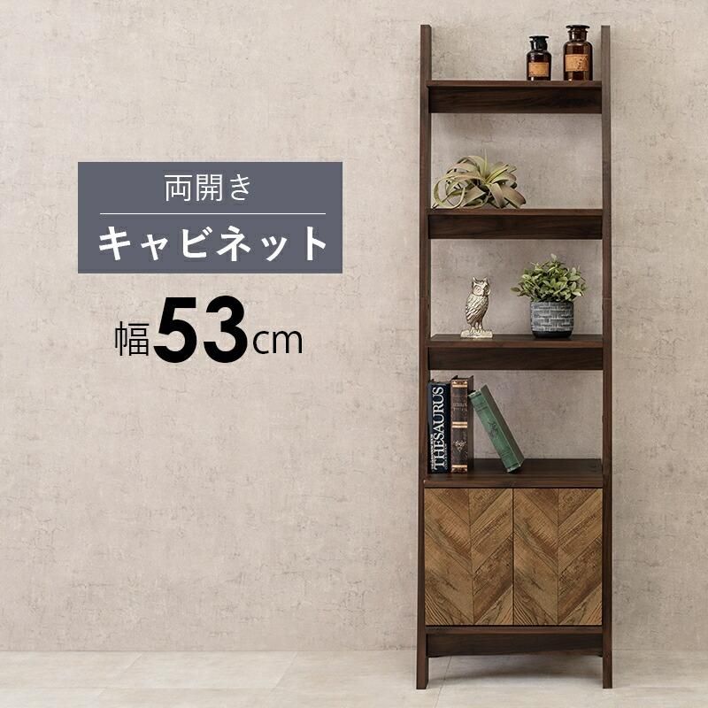 ■キャビネットラック ブラウン 木目調ヘリンボーン柄 キャビネット 本棚 書棚 おしゃれ モダン リビング収納 棚 スタイリッシュ 木目 ラック 大容量■