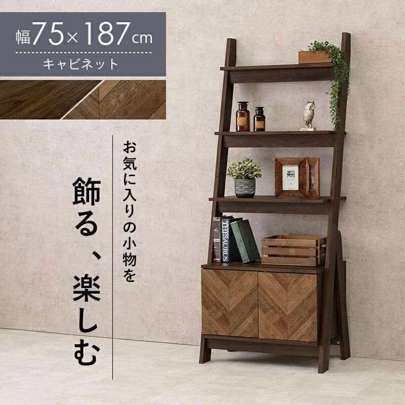 木目調のヘリンボーン柄がアクセントとなったスッキリと使いやすいキャビネットラック