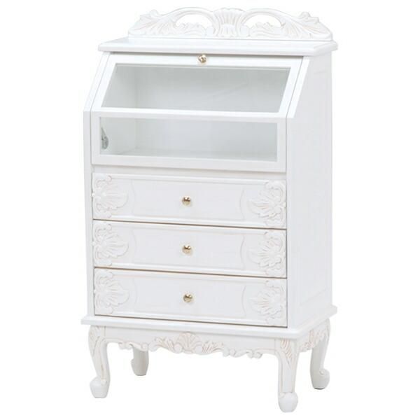 ガラスキャビネット アンティークホワイト エレガントな彫刻 ねこ脚 引き出し カワイイ 女の子 家具 ガラス張り 見せる収納 アンティーク風 ガラス