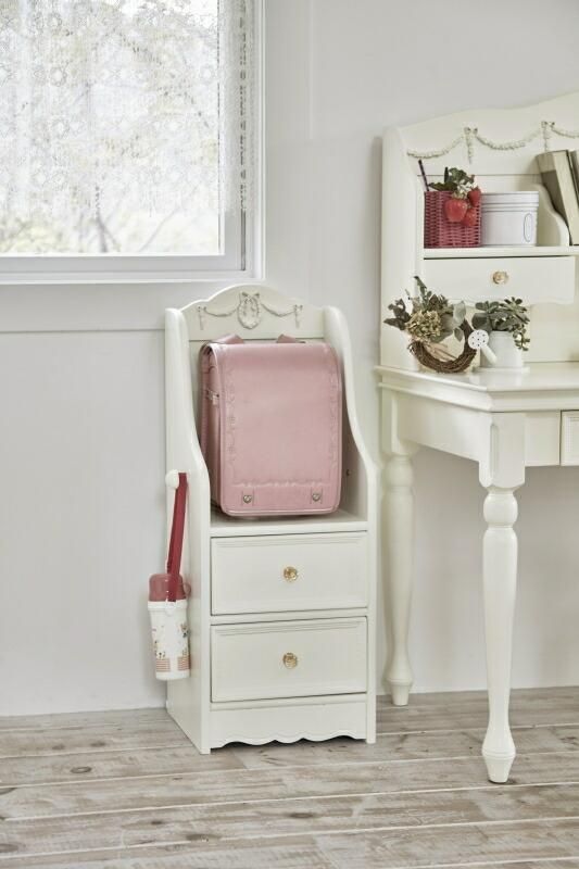 商品説明 キュートなリボンレリーフとクリスタルの取っ手が可愛いランドセルラック。