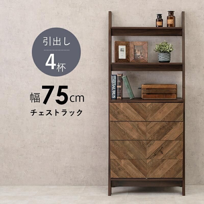 【要確認】沖縄・離島は配送不可です。配送先が不可地域の場合はご注文後キャンセル処理させていただきます。 ■チェストラック ブラウン 木目調ヘリンボーン柄 チェスト ラック おしゃれ スタイリッシュ ナチュラル オシャレ 木目 リビング収納 書斎 キャビネット 棚■