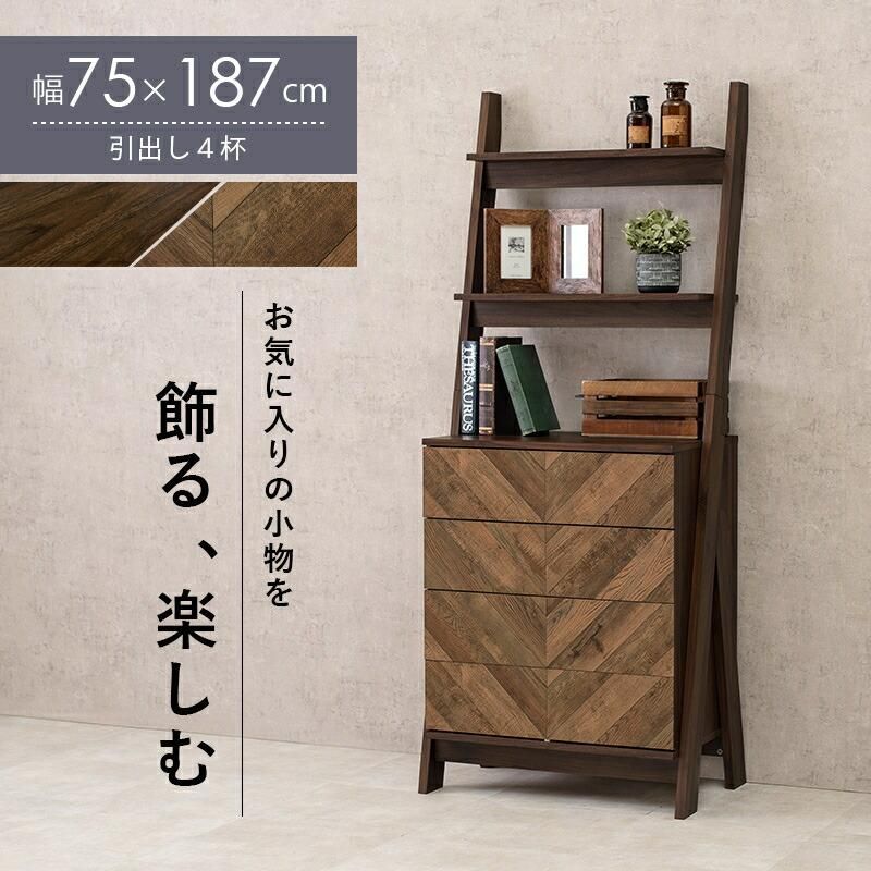 ■チェストラック ブラウン 木目調ヘリンボーン柄 チェスト ラック おしゃれ スタイリッシュ ナチュラル オシャレ 木目 リビング収納 書斎 キャビネット 棚■