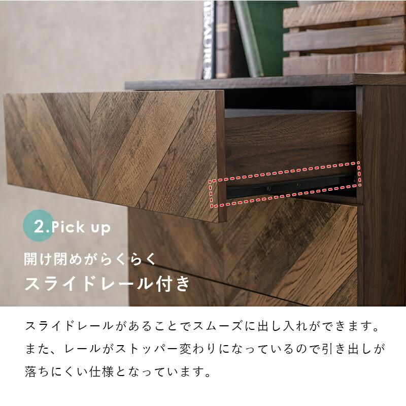 商品説明 木目調のヘリンボーン柄がアクセントとなったスッキリと使いやすいチェストラック