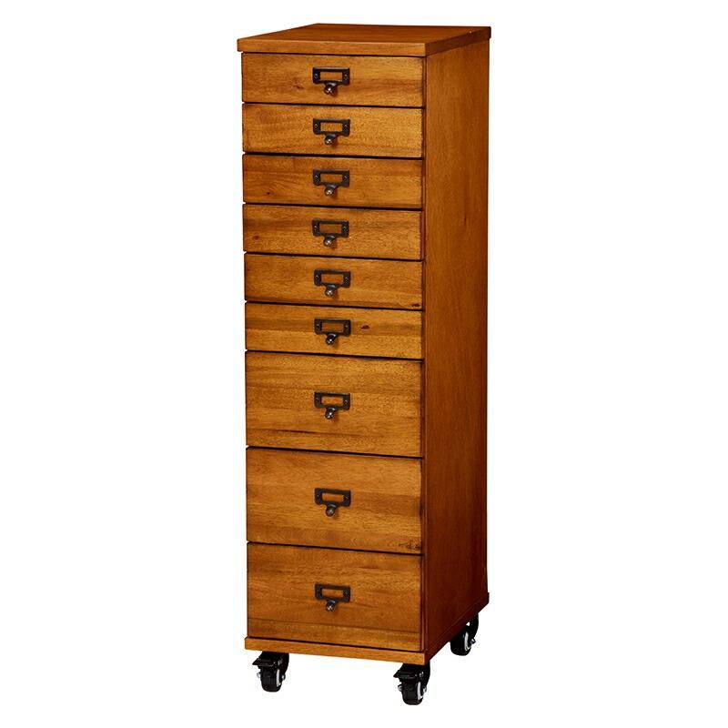 木の質感を活かしメンズライクながらもやわらかな印象の多段チェスト。書類や雑貨の分類収納に便利。