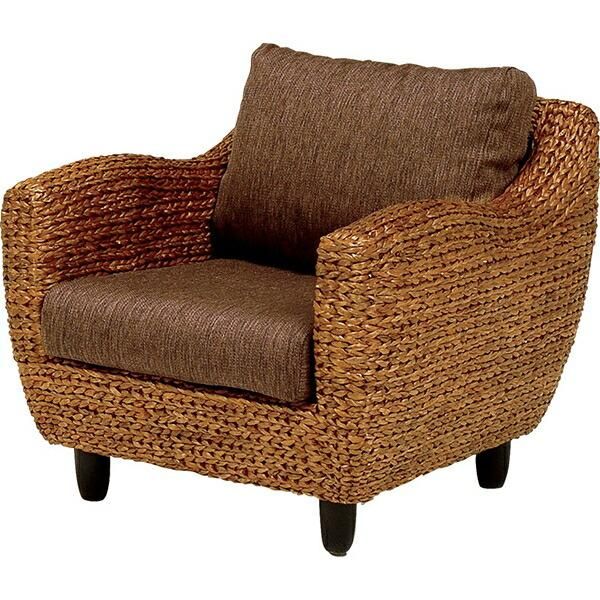■アームチェアー ブラウン 厚み ボリューム感 ウォーターヒヤシンス素材 魅力的 お洒落 ナチュラル リビング アジアン風 癒し■