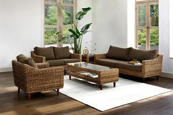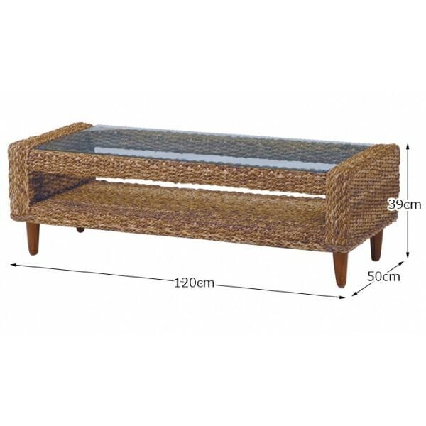 丁寧に編みこまれたアバカ素材、アジアンリゾートのような雰囲気が味わえます。天板には強化ガラス使用。
